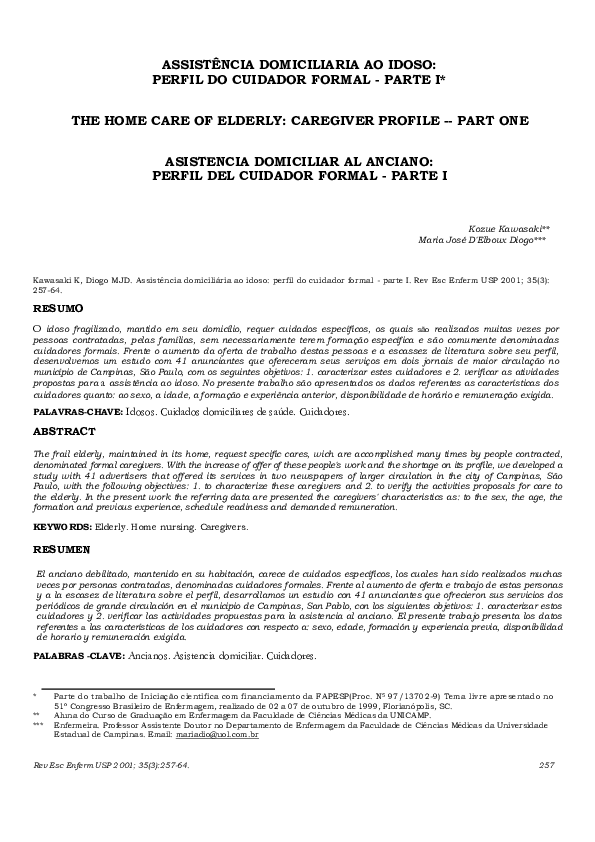 Pdf Assistencia Domiciliaria Ao Idoso Perfil Do Cuidador Formal Home Care Enfermagem Pdf Image Source @ www.academia.edu